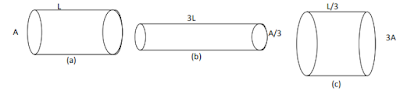 13. The figure below shows three cylindrical copper conductors along with their face areas and lengths. Compare the resistance and the resistivity of the three conductors. Justify your answer.